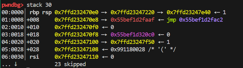 rsi 在栈上的偏移是 0x30,这就是为什么下面会出现 0xd38 = 0xd68 – 0x30.