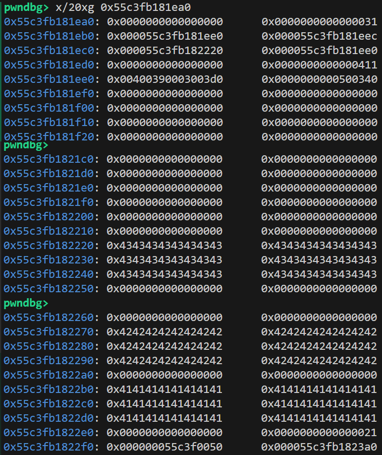 leak_heap = u64(leak[0x20:0x26].ljust(8, b'\x00'))