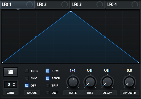 SMOOTH:平滑过渡,让 LFO 的输出变化更柔和、连贯,消除波形突变带来的 “生硬跳变感”,让调制效果更自然。不常用。
