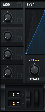 ATTACK 启动时间,从 0 到最大值所需的时间,拉长 ATTACK 可以用来做 pad 音色(单位:ms)