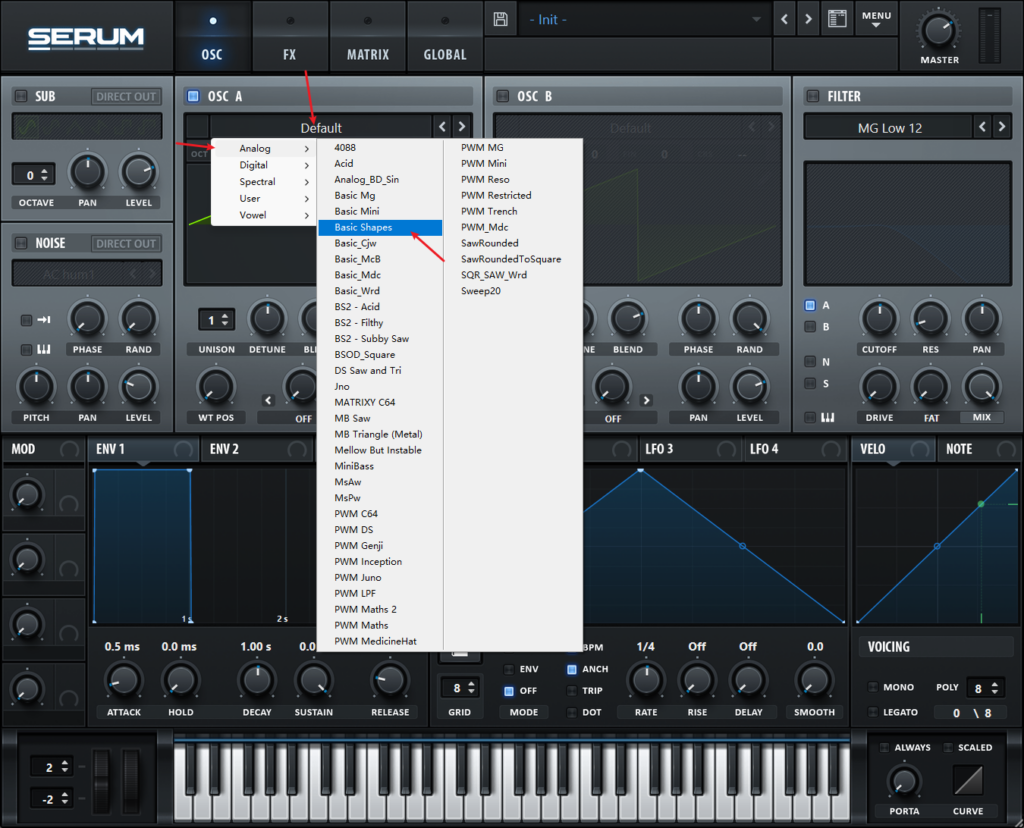 DIRECT OUT:跳过 Serum 中所有添加的效果器,直接发送到轨道