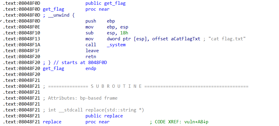# 包含 cat flag.txt 的函数地址